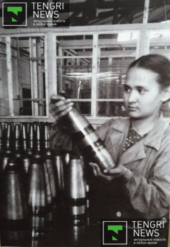 В Казахстане базировались заводы по выпуску боевых снарядов. Контролер С.Азарбаева проверяет готовую продукцию. Фото: Центральный государственный архив кинофотодокументов и звукозаписей РК.