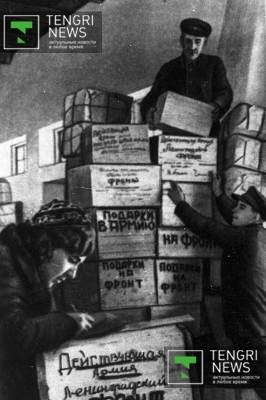 Несмотря на тяготы, казахстанцы посылали для бойцов подарки. Алма-Ата, 1942 год. Фото: Центральный государственный архив кинофотодокументов и звукозаписей РК.