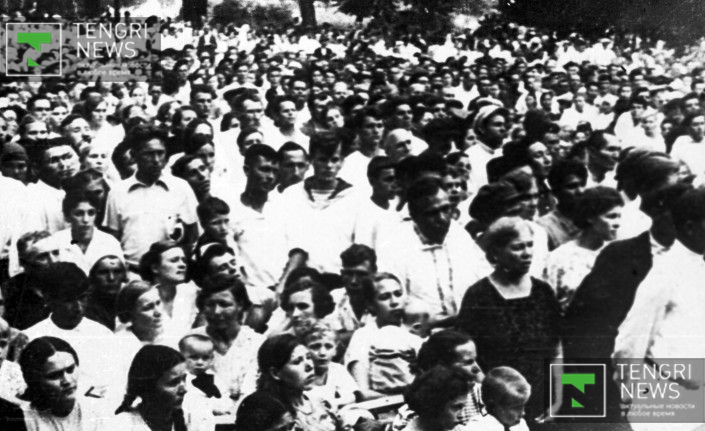 Митинг в связи с нападением фашистов на Советский Союз. Алма-Ата, 1941 год. Фото: Центральный государственный архив кинофотодокументов и звукозаписей РК.