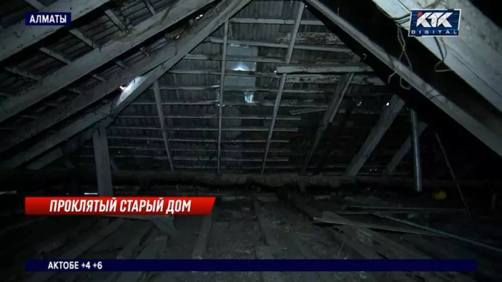 В алматинской двухэтажке обваливается потолок и осыпаются стены, крыша протекает. Жильцы видели гнилые доски. Владельцы хотели залатать дыры своими силами, но не получилось.