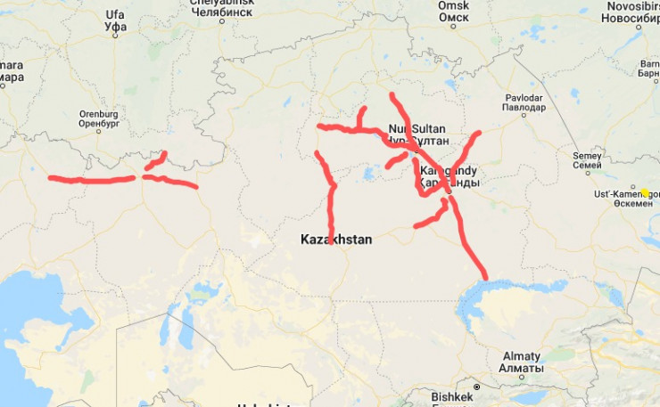 Кроме того, движение ограничено по всем направлениям в Карагандинской области.