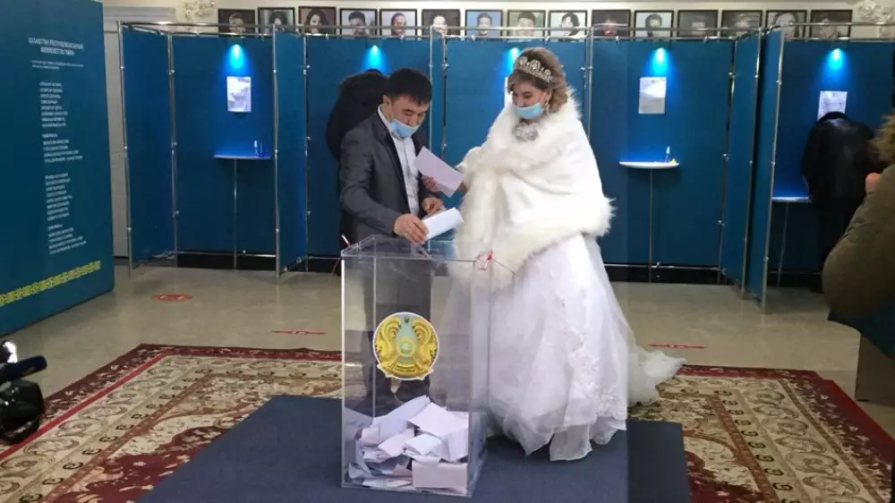 Нурболат и Карлыгаш - не единственные молодожены на выборах в Казахстане. В Нур-Султане 10 января поженились Ботагоз Калтаева и Фахат Жанбеков. Они голосовали на избирательном участке №144.