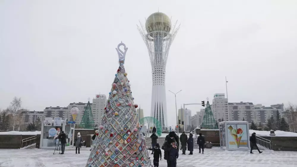 Вязаную елку высотой шесть метров установили в Нур-Султане 29 декабря. Народный флешмоб "Экоелка в стиле құрақ көрпе" был запущен в Нур-Султане две недели назад. За это время связано свыше 2 000 квадратиков размером 20 на 20 сантиметров. Народный проект объединил города Казахстана и жителей столицы. Также вязали мастерицы из России и Узбекистана.