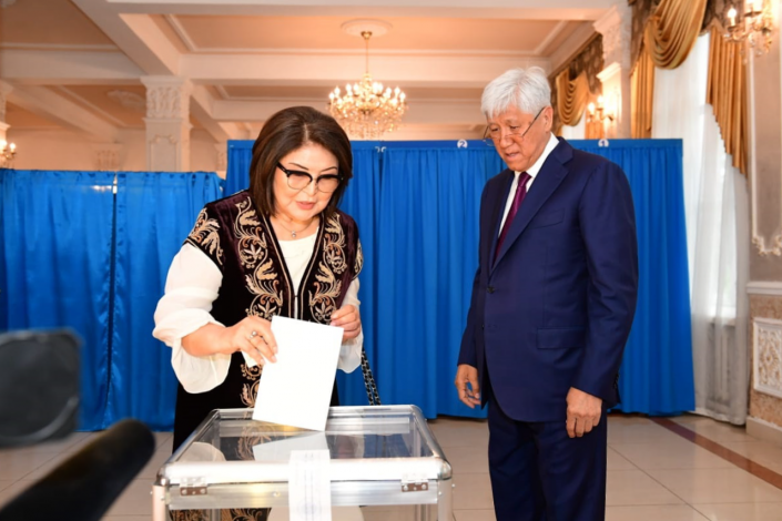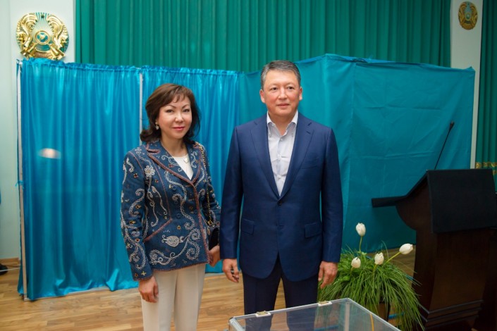 Тимур и Динара Кулибаевы проголосовали на участке № 310 в Алматы.