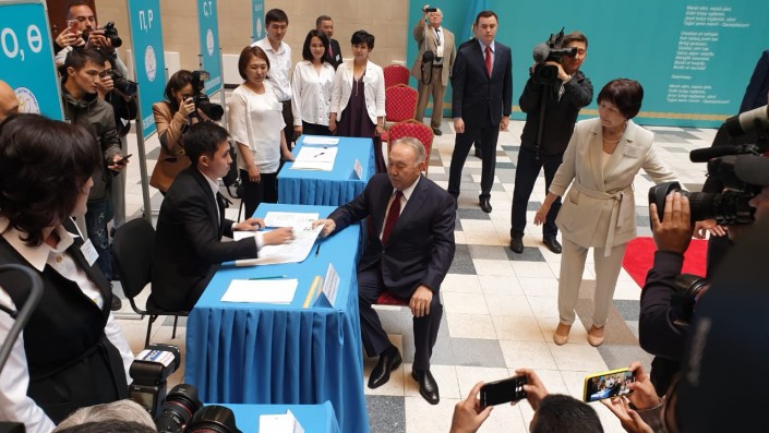 Нурсултан Назарбаев проголосовал на избирательном участке в столичном Дворце школьников.