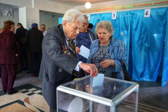 Казахстанцы приходят на выборы семьями и делают селфи.