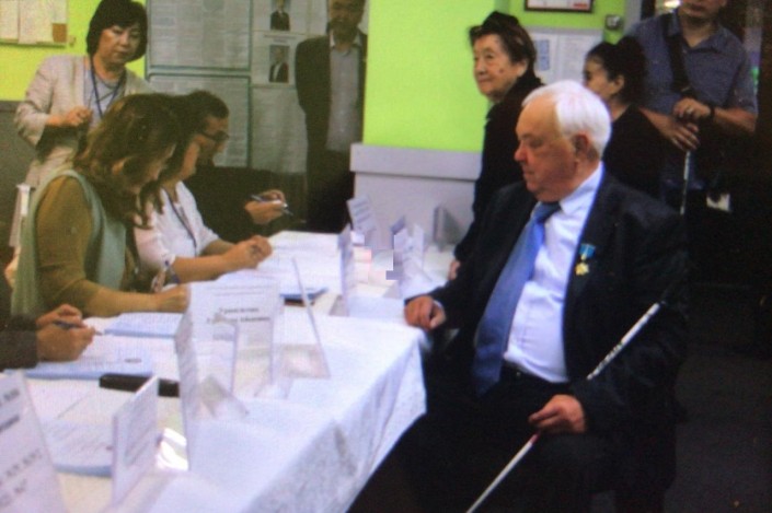 В Усть-Каменогорске на избирательный участок пришел ветеран ВОВ Павел Ященко. По его словам, он не пропускает ни одни выборы. Павла Александровича сопровождала супруга.