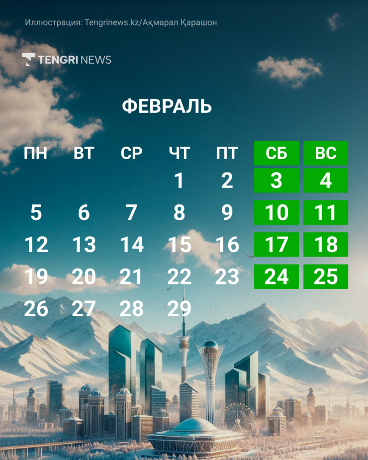 В феврале казахстанцев ожидают 8 выходных дней, передает Tengrinews.kz.