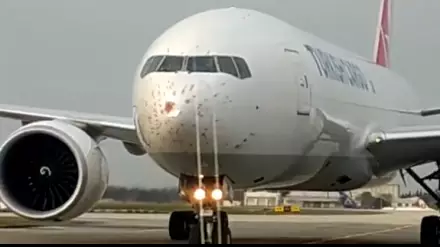 Вылетавший в Алматы самолет столкнулся со стаей птиц в Стамбуле Кадр из видео с сайта 360tv.ru