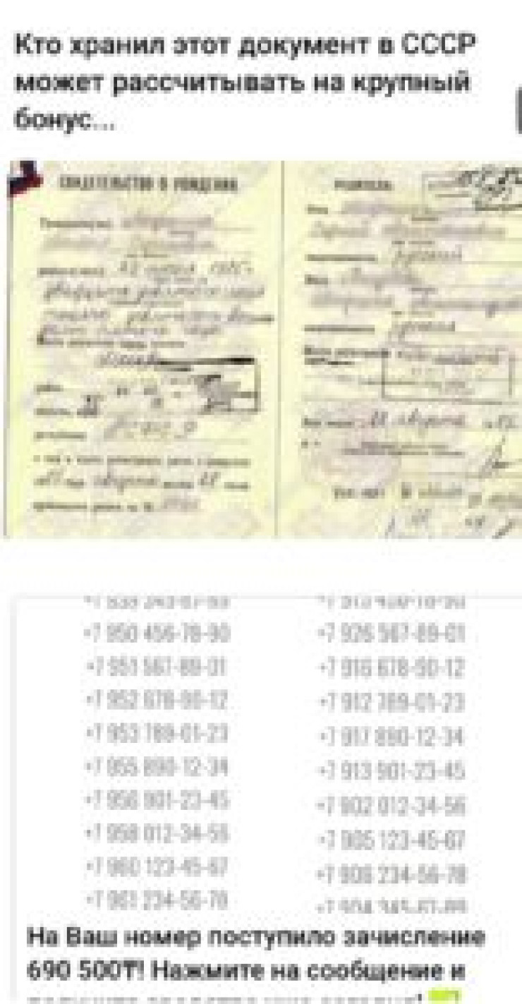Комментарий пресс-службы Минтруда был связан с появлением в Казнете рассылки с изображением документа времен СССР. Якобы те граждане, у кого сохранились такие документы, могут получить крупный бонус. Это обман.