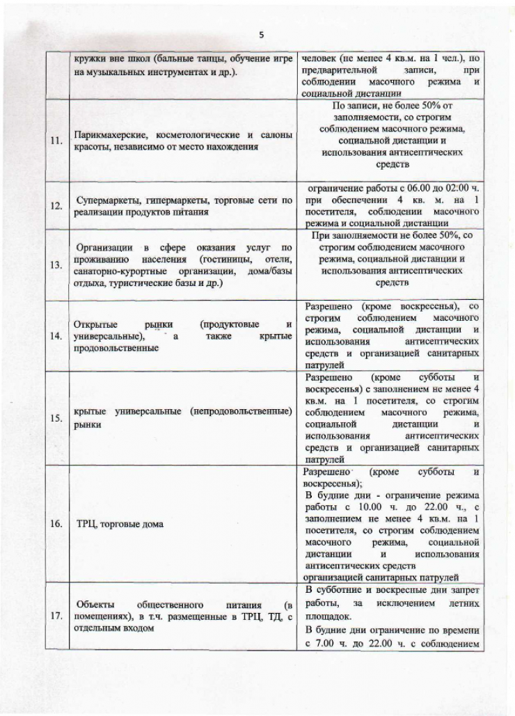 Открытые рынки, а также крытые продовольственные разрешены в будни и субботу, кроме воскресенья.