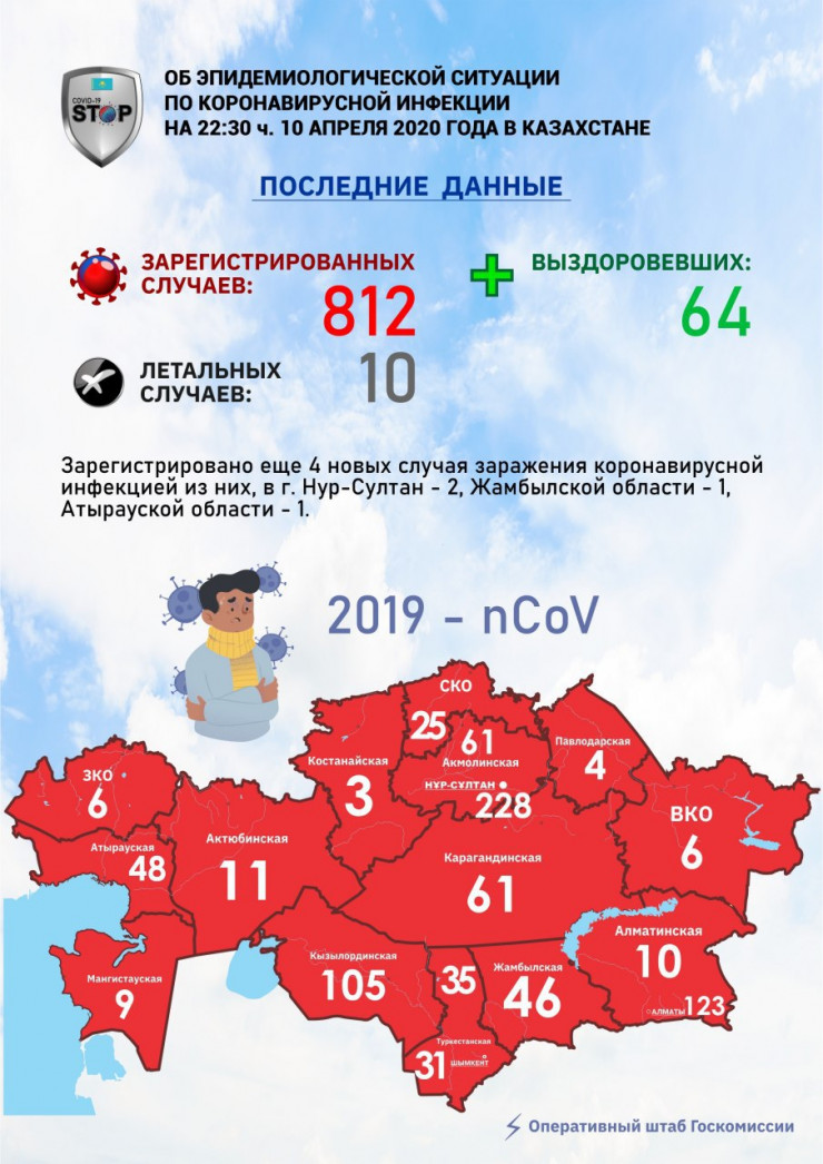 Таким образом, всего в стране подтверждено 812 случаев COVID-19 во всех областях. Из них: