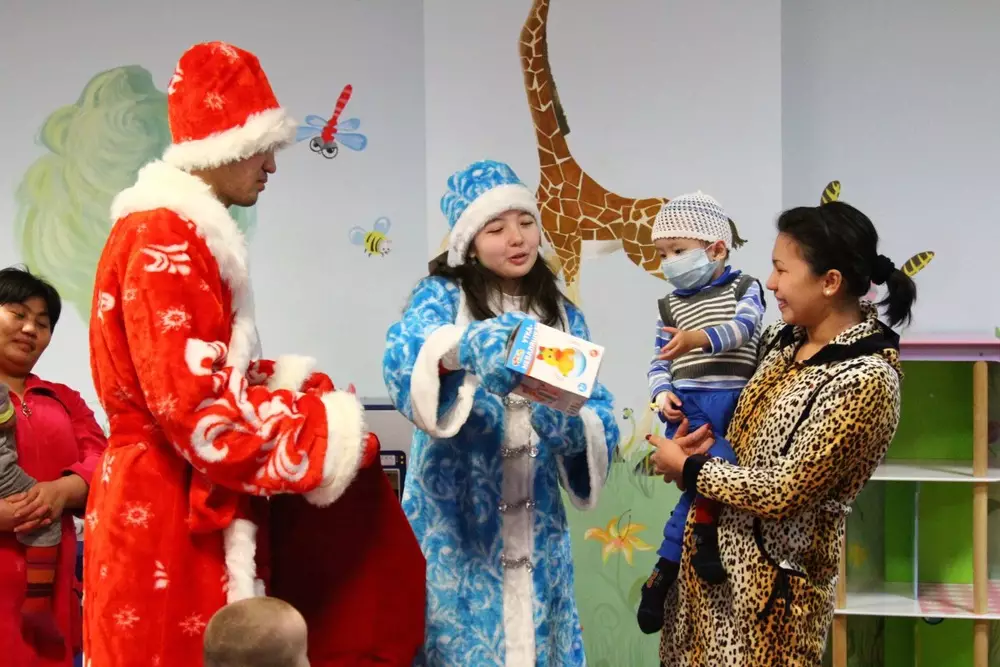 По словам главного специалиста отдела маркетинга Национального научного кардиохирургического центра Залины Шалтаевой, Новый год отмечать в центре останутся 54 ребенка в возрасте от 6 дней до 16 лет. Это дети, в основном, с врожденными пороками сердца. Она отметила, что подарки подбирались исходя из возрастной категории. "Деткам, которые помладше - им неваляшки и вообще игрушки, которые нельзя проглотить, безопасные. Среди игрушек для детей до года были также игрушечные телефоны, фонарики. Для детей постарше - пазлы, книги и игрушки для развития. Возрастную категорию, конечно, старались учитывать".