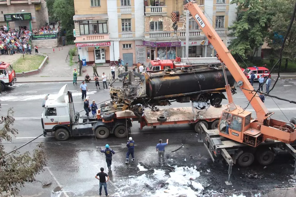 27 июня на пересечении проспекта Сейфуллина и улицы Кабанбай батыра взорвался бензовоз. В результате огонь перекинулся на жилой дом, пострадали 39 квартир и 15 авто. Погиб водитель бензовоза - 27-летний Александр Горюнов. Позже аким Алматы Ахметжан Есимов сказал, что будет ходатайствовать о посмертном награждении Горюнова.