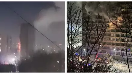 Сообщение о пожаре в высотном доме поступило в 21:29 по местному времени. Речь, предположительно, идет о взрыве газа.
