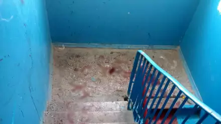 Кадры с места события в редакцию издания прислали очевидцы. На месте происшествия в квартире и в подъезде, как видно на снимках, все залито кровью.