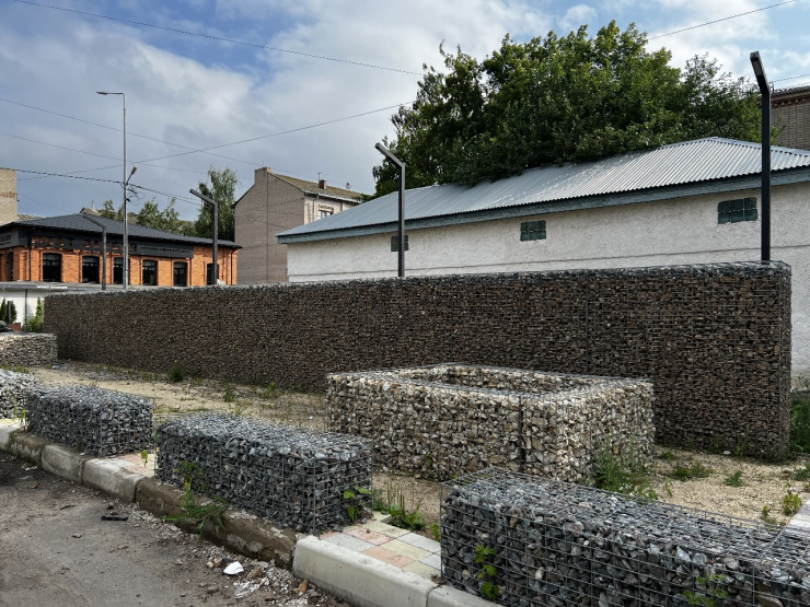 А многие и вовсе сравнили сквер с концлагерем, увидев большую схожесть ограждения, выполненного из наполненных камнями металлических сеток, с обтянутыми колючей проволокой заборами концлагерей. Еще большее сходство объекту добавили черные металлические фонари.