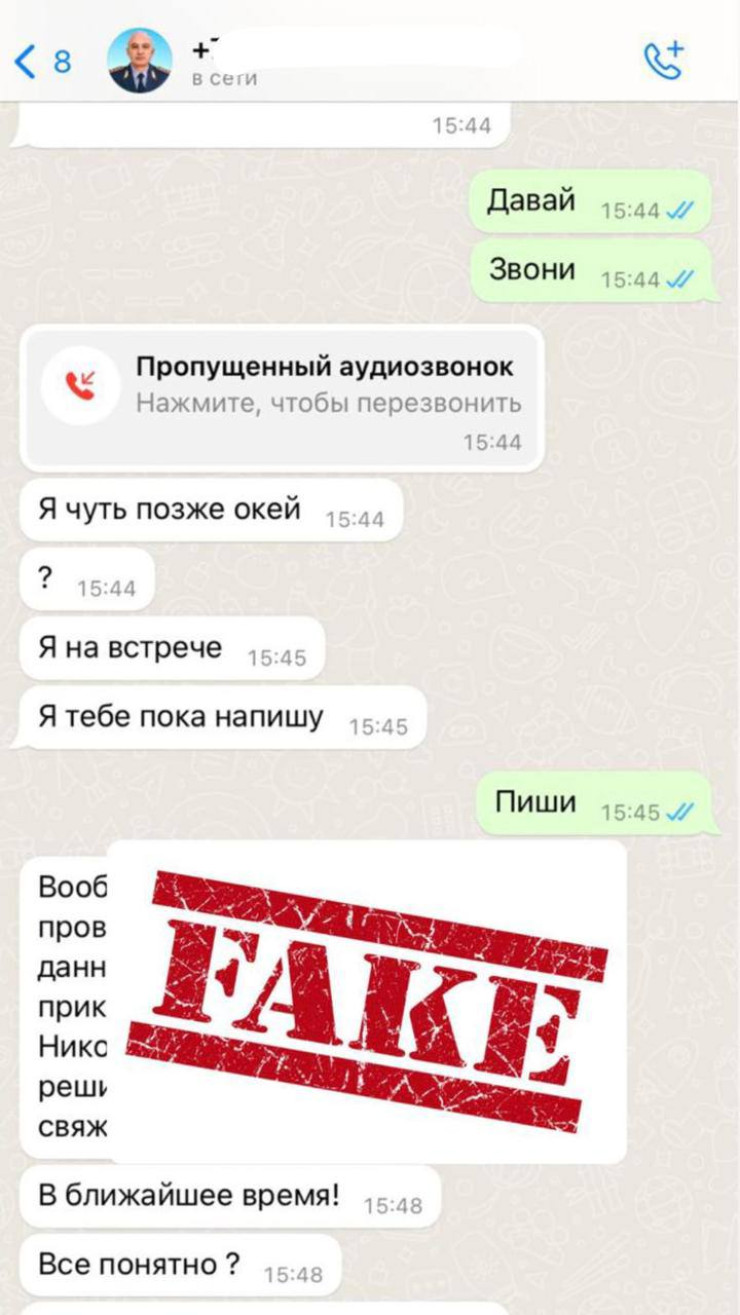 В мессенджерах рассылается информация якобы от имени министра обороны Казахстана Руслана Жаксылыкова, содержащая фейковые сведения. Фрагмент такой переписки ведомство опубликовало в официальном Telegram-канале, передает Tengrinews.kz.
