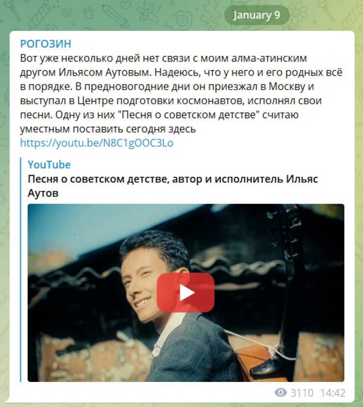 Рогозин в своем Telegram-канале написал, что не может связаться с Аутовым, но надеется, что у казахстанца и его родных все в порядке.