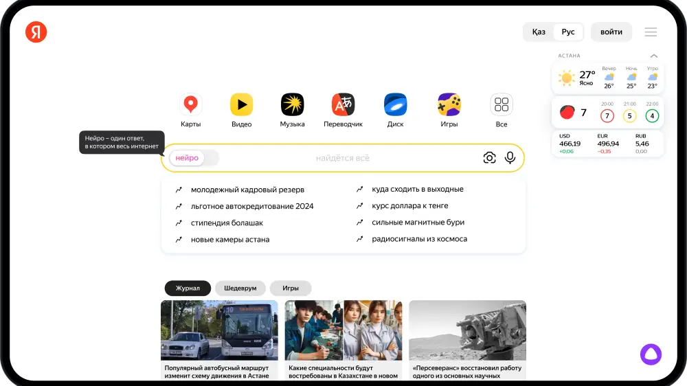 На Yandex Qazaqstan Day представили новый сервис Нейро, который объединил возможности поиска и больших генеративных моделей. Пользователь может задать в сервис любой вопрос на казахском или русском языке. Нейро изучит информацию из всего казахоязычного и глобального интернета и соберет ее в один емкий ответ со ссылками на источники. Сервис уже доступен на yandex.kz.