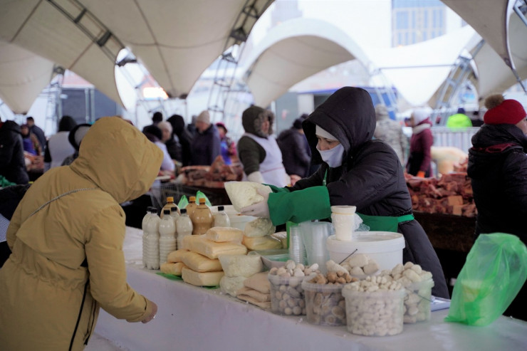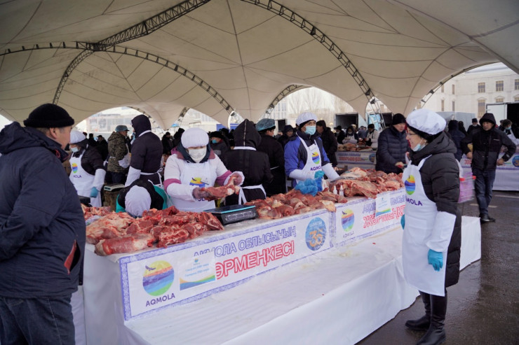"Более 200 товаропроизводителей Акмолинской области привезли свыше 50 наименований продуктов питания для жителей и гостей города Нур-Султана. Общий объем привезенной продукции составил около 500 тонн на сумму более 400 миллионов тенге. Цены заранее согласованы и зафиксированы на 10-15 процентов, а то и 20 процентов, ниже рыночных. Среди привезенных продуктов - более 130 тонн мяса и колбасных изделий, более 50 тонн молочной продукции, 8 тонн свежей рыбы, 14 тонн муки, свыше 150 тонн картофеля, более 3 тонн кондитерских изделий и так далее. К реализаторам продукции области предъявляются строгие требования по соблюдению санитарных норм", - сообщил заместитель акима Акмолинской области Галымжан Абдыкалыков.
