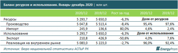 Доля экспорта составила 4 процента. Казахстан отправил на экспорт лишь 210,8 миллиона яиц - сразу в два раза меньше, чем за январь – декабрь 2019-го. Реализация на внутреннем рынке составила 5 миллиардов яиц - на 2,7 процента меньше, чем годом ранее.