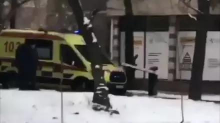 "Поставили шлагбаум. Скорая помощь не может проехать. Уже пять минут здесь стоит", - говорит автор ролика.