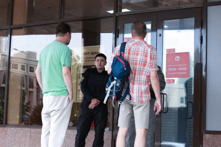 Корреспонденты Tengrinews.kz побывали в столичном филиале Kaspi, где днем ранее мужчина захватил в заложники семерых человек.