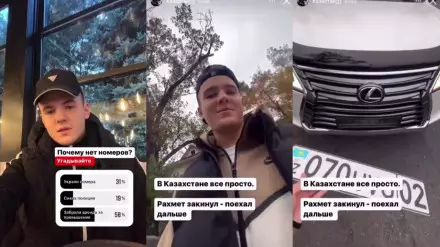 В соцсетях появился ролик, снятый блогером из России. Он рассказал, что нарушил правила дорожного движения, оставив машину в неположенном месте, и ему сняли номера. После этого, по словам блогера, "он закинул рахмет и решил все проблемы", вернув номера.