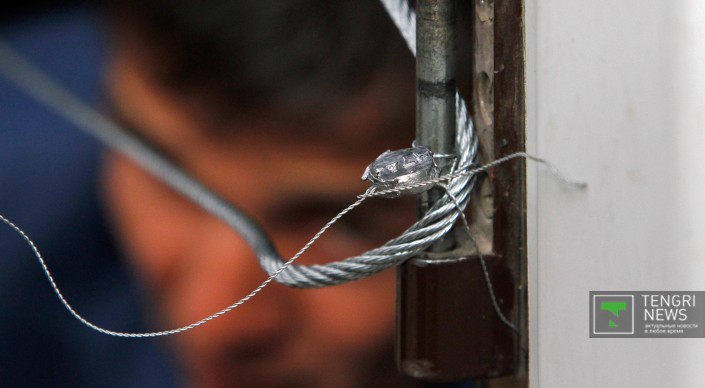 Судисполнители опечатывают вход железным тросом и пломбами
