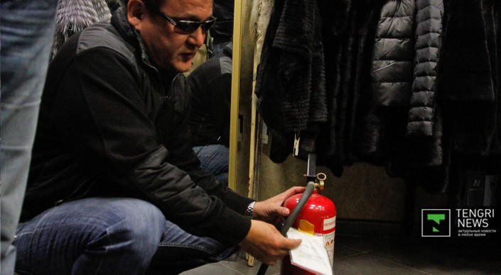 Журналистам показывают огнетушители уже в другом торговом центре, который также относится к ТОО "Достар Сауда". Общая площадь рынка - 4,5 гектара.