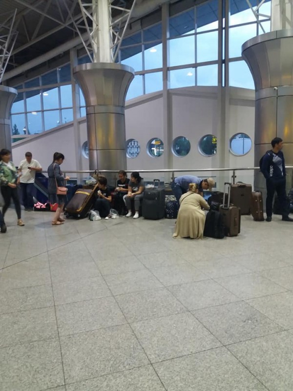 Из зала ожидания международного аэропорта Алматы убрали сиденья. Пассажиры в ожидании регистрации на рейс сидят на чемоданах, передает Tengrinews.kz.