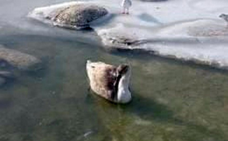 "Изначально мы думали, что птица ослабла. Но, к счастью, лебедь отплыл. Температура приемлемая", - отметили в ведомстве.