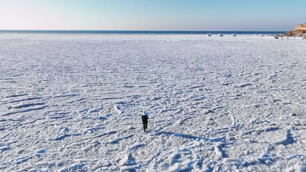 Актауский блогер Азамат Сарсенбаев показал на видео покрытый льдом Каспий. Море замерзло из-за аномальных холодов, передает Tengrinews.kz.