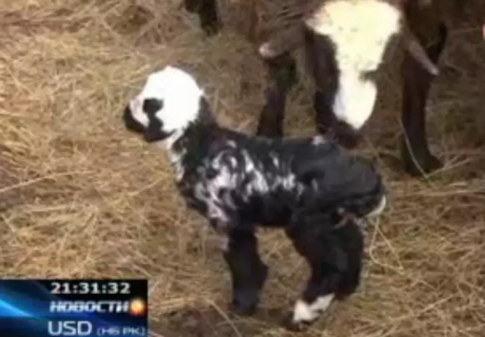 На западе Казахстана родился ягненок с надписями по бокам "Аллах" и "Мухаммед" Ягненок Аллаберген. Кадр телеканала КТК