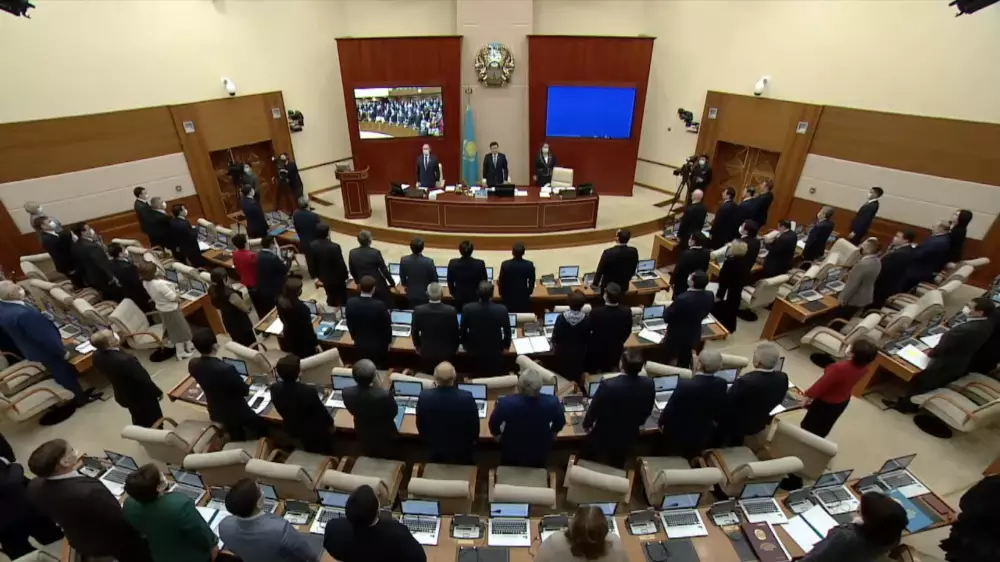 "Ровно один год назад во время трагического январского события погибли невинные люди. Предлагаю начать сегодняшнее пленарное заседание с минуты молчания в память о жертвах января", - сказал председатель Мажилиса Ерлан Кошанов перед началом пленарного заседания.