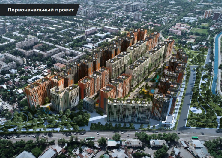 Напомним, новость о новом ЖК на месте бывшего плодоконсервного комбината взбудоражила алматинцев. По первоначальному проекту на 13 гектарах земли планировали построить 57 домов по 17 этажей каждый.
