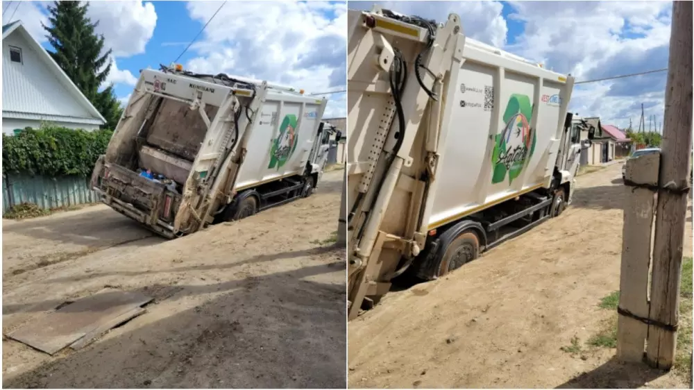 "Еще утром провалилась в землю автомашина по вывозу мусора. Ранее мы писали, что мусор не вывозят из-за отсутствия асфальта, даже скорая помощь не может заехать. Вот такие дороги в Актобе", - пояснили журналисты.
