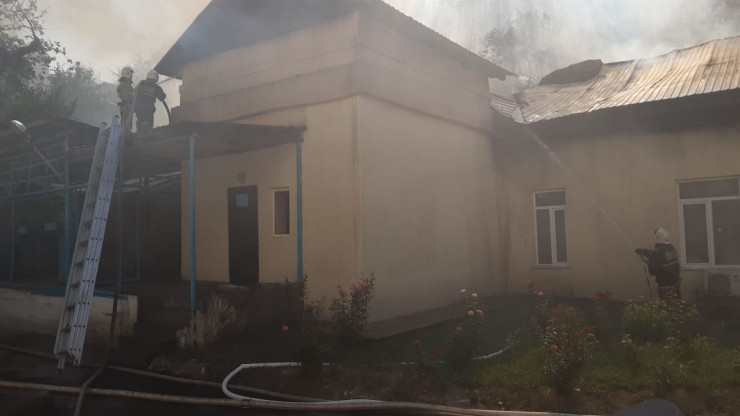 В пресс-службе ДЧС пояснили, что пожар произошел в здании на территории Кардиологического центра. В этом здании расположен кислородонаполнительный пункт. Также в здании имеется прачечная.