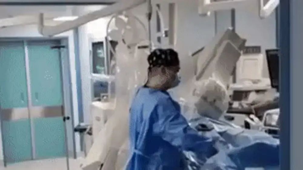 "В НИИ кардиологии хирурги продолжают оперировать, несмотря на то что произошло землетрясение и могут быть афтершоки", - говорит голос за кадром.