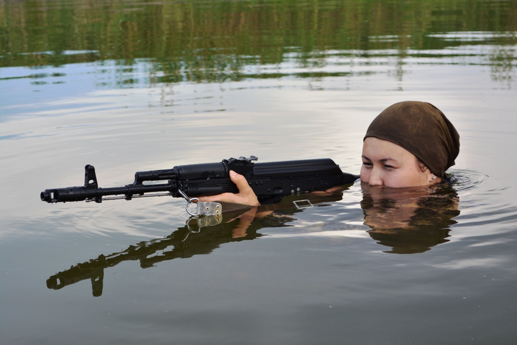 Женщинам-военнослужащим РК устроили заплыв с оружием в руках Фото пресс-службы Министерства обороны РК©