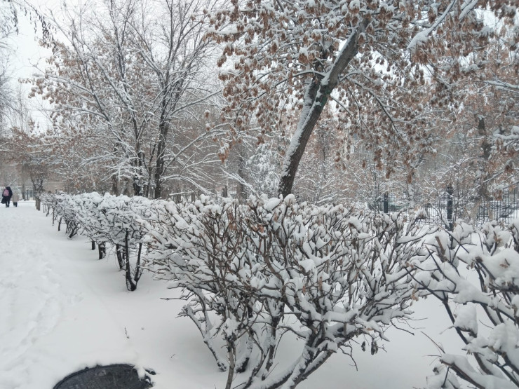 Сегодня жители Костаная наблюдают, как улицы и парки города покрылись ровным снегом, деревья и крыши домов обрели зимний облик, а температура слегка понизилась, добавляя морозного свежего воздуха.