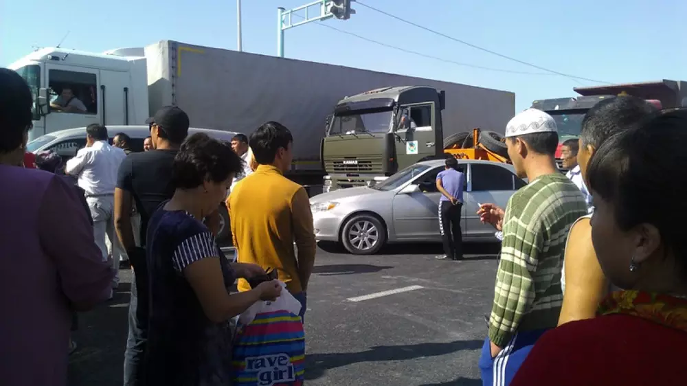 Три десятка жителей микрорайона "Ынтымак" перекрыли движение по трассе республиканского значения. Из-за этого образовалась стометровая пробка. Люди таким образом пытались привлечь внимание местных властей к своей проблеме. Они требуют сделать на опасном участке дороги пешеходную зебру и включить светофор, который установили еще несколько месяцев назад. По словам жителей, на этом месте дороги очень часто страдают пешеходы. Только за прошедший месяц жертвами ДТП стали пять человек, а накануне на глазах у людей пассажирский автобус насмерть сбил 7-летнюю девочку.