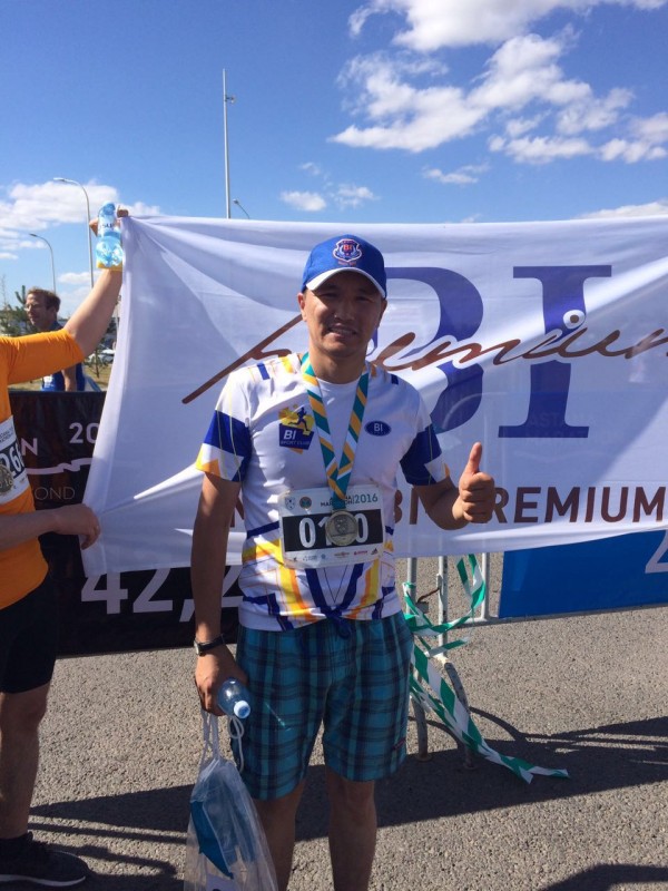 "Мне советовали сойти с дистанции, но я решил добежать до финиша. Когда бежишь, боли не чувствуешь, мышцы сработали хорошо. Сейчас чувствую себя нормально", - говорит Айдос Мукаш. По его словам, это был его второй марафон.