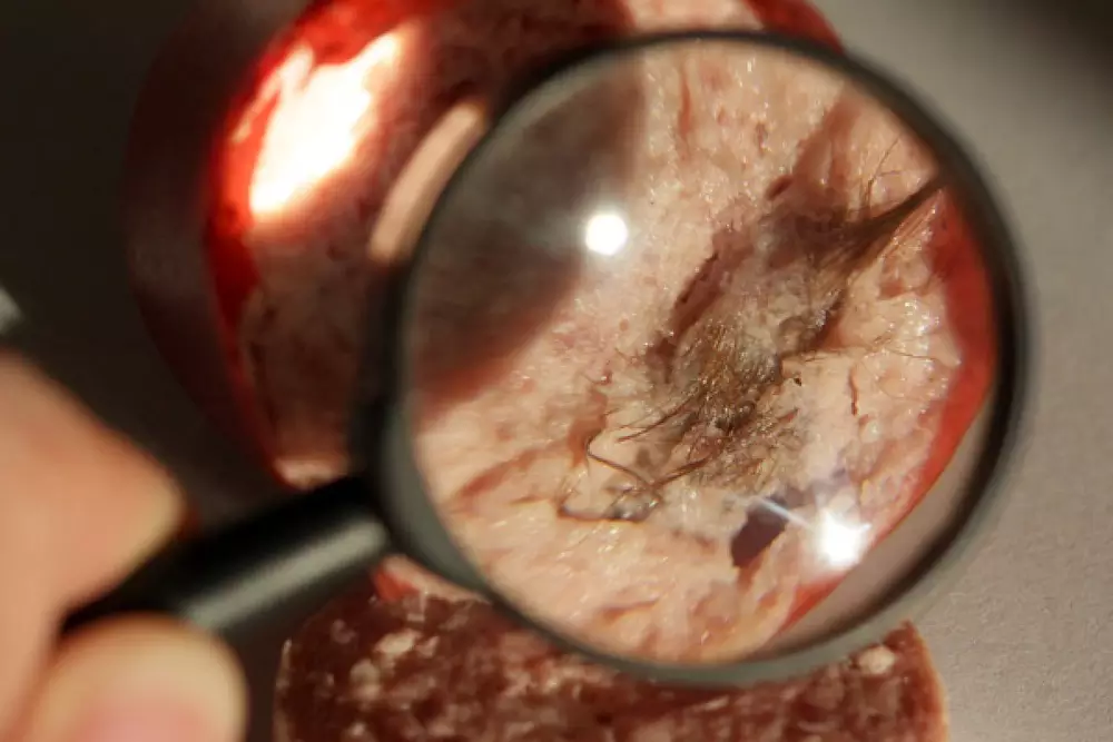 Неприятную находку женщины принесли в редакцию издания, где колбасу внимательно рассмотрели с помощью увеличительного стекла. "Рыжеватый цвет и толщина отдельных волос, виднеющихся на срезе колбасы, скорее говорят о том, что это кусочек шкуры коровы, а не крысиный хвост. Но без тщательного анализа наш вывод так и остается предположением. Хотя сути дела это не меняет - ничего подобного рецептура "Крестьянской" явно не предполагала", - сообщает портал.