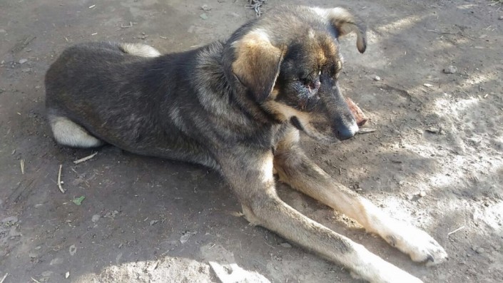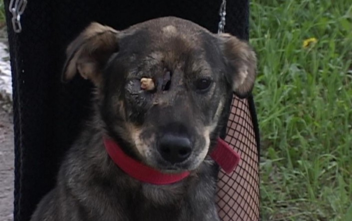 Искалеченную собаку заметили на улице прохожие. По словам Таран, собаку били по голове палкой с гвоздем, выбили глаз, пробили голову, носовую полость, чудом не задев мозг. Несмотря на это, пес спокойно дался в руки незнакомым девушкам, смирно ехал в машине и терпел все медицинские обработки.