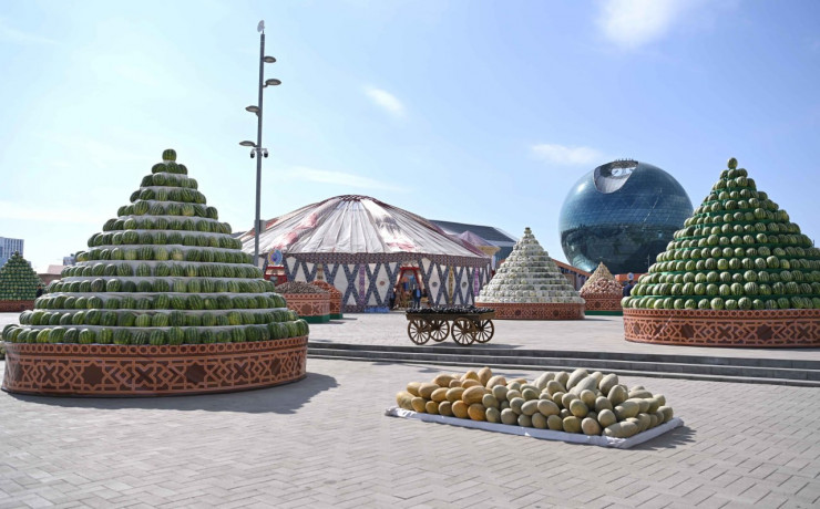 На выставку-ярмарку сельскохозяйственной, промышленной продукции, изделий народных ремесел и национальных блюд Таджикистана, проходящую в Астане в рамках Дней культуры Таджикистана в Казахстане, привезли знаменитые пирамиды из арбуз и дынь, передает Tengrinews.kz.