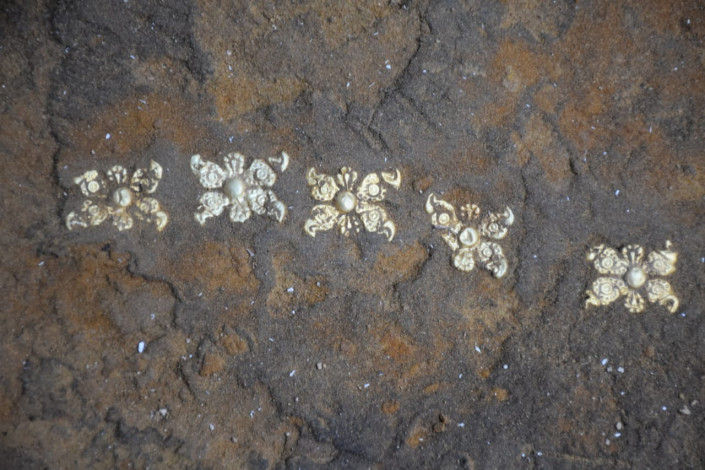 С начала августа ученые исследуют четыре захоронения (из 15 предполагаемых). В одном из них на глубине почти шести метров археологи нашли останки человека, жившего в V веке до нашей эры. Его одежда покрыта золотом. По мнению ученых, это свидетельствует о его высоком положении в обществе.