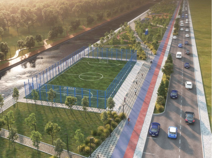 Первая очередь - от проспекта Улы Дала до улицы Онгарсыновой. Площадь озеленения - 18 319,4 квадратного метра. Площадь тротуарных покрытий составит 20 652,6 квадратного метра.