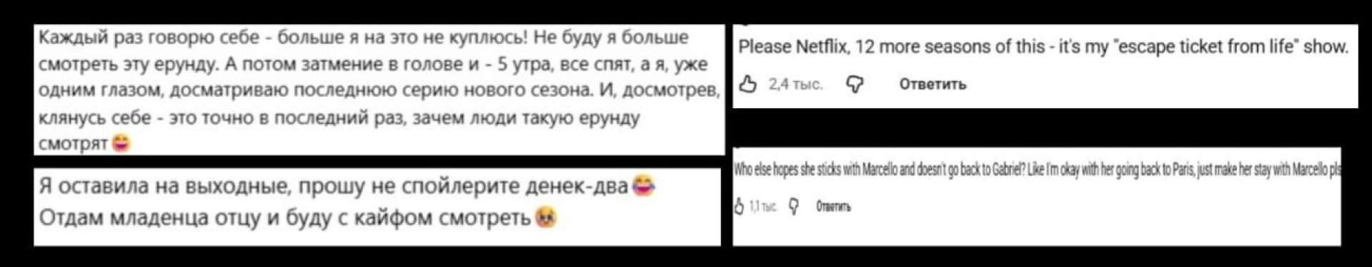 Также в комментариях пользователи сети уже успели обсудить любовные линии сериала. Так, один из комментаторов надеется на возвращение отношений между Эмили и Марчелло.